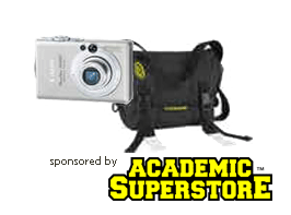 Prize: Canon PowerShot SD600 Elph or similar and a Timbuk2 brand Messenger Bag from the Academic Superstore! (Total ARV $359.90)