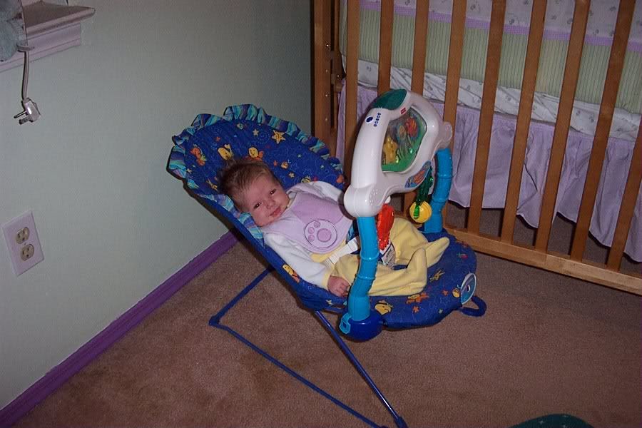 Edward's Mommy replied: The room is so beautiful. We have the same bouncer. Edward used to talk to the fish in the window! It was so cute!