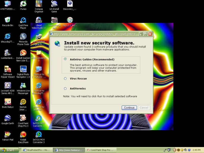 punkeemunkee'smom replied: I just had to get a new computer...seriously-same virus (same pop-up name) killed my old one! We took it in and everything. The guy there told me to run AVG but this new one came with NORTON. I noticed yesterday that my tool bar only had 2 pop ups blocked well since surfing on here and now it has 174...IDK a few weeks ago I was getting some weird banners on here too so maybe some of us have picked something up